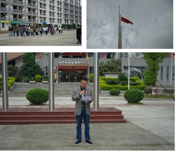 早晨7点15分,升旗仪式正式开始。国旗护卫队迈着庄严而整齐的步伐护送着国旗向升旗台走来,伴随着嘹亮的国歌声响起,鲜艳的五星红旗冉冉升起。随后beat365官方网站党委副书记方敏在国旗下进行讲话。方敏副书记向同学们讲述了我国百年强国路的艰辛,并向在场学生提出了三点希望:希望你们学史增志,补足精神之钙,做信仰坚定的理想青年;希望你们学史明德,锤炼品格,做文雅有礼的有德青年;希望你们学史力行,奋力拼搏,做笃实力行的有为青年。