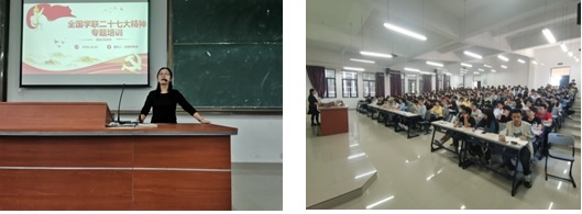 为加强学习宣传贯彻习近平总书记贺信、党中央致辞和全国学联二十七大有关精神,2020年10月28日下午1时,beat365官方网站团委学生会在连江校区诚信楼大阶一召开学习全国学联二十七大精神培训会。本次会议由院团委书记吴蕴君老师主讲,全院团委学生会干部及学生代表参加,培训会围绕“坚定跟党走,奋斗写青春-学习全国学联二十七大精神”主题开展。