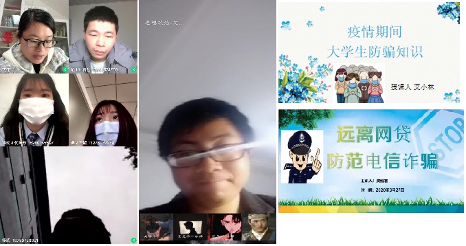 疫情防控期间,专题班会采用线上方式开展,beat365辅导员们通过QQ班级群、QQ视频会议、腾讯会议等多种新媒体方式将常见电信诈骗案件、不良“校园贷”警示等学习材料传达给每个班级的每一位学生,并结合日常工作案例和线上交流等方式提升班会效果,共有36个班级,1734名学生参与。