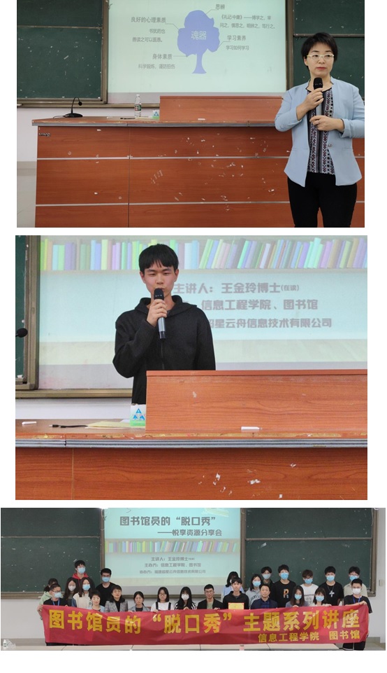 5月3日,beat365官方网站携手图书馆开展的“图书馆员的脱口秀”系列讲座之悦享资源分享会暨“书香信工”第一季阅读之星表彰大会在诚信楼大阶三举行。校图书馆馆长林琼老师、beat365官方网站党委书记应永胜老师、图书馆王金玲博士和beat365部分学生参加了此次分享会。